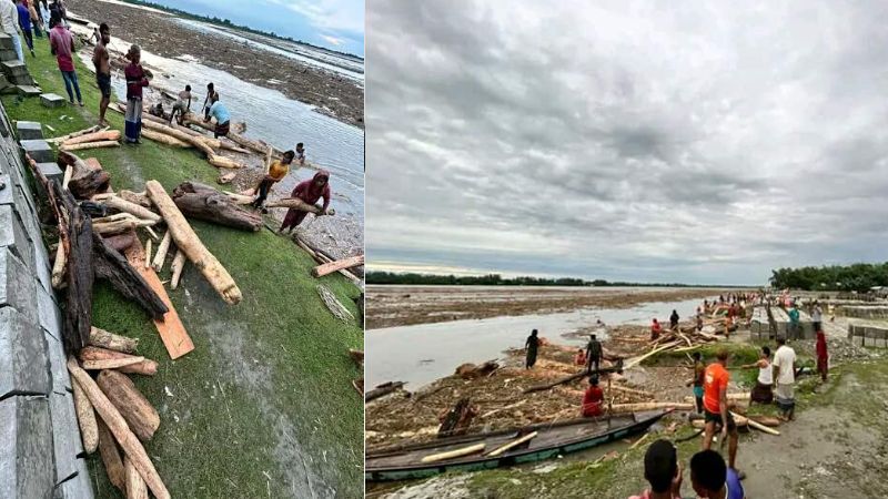 রোববার (৫ অক্টোবর) বিকেল থেকে বাংলাদেশের অভ্যন্তরে নানা উপায়ে এসব গাছ নদী থেকে সংরক্ষণ করছেন তীরবর্তী মানুষ। বাংলাদেশের ভুরুঙ্গামারী উপজেলার শিলখুড়ি ইউনিয়নের ঢলডাঙা, শালঝোড় এলাকায় কালজানি নদীর পাড় থেকে এসব তুলছেন স্থানীয়রা।