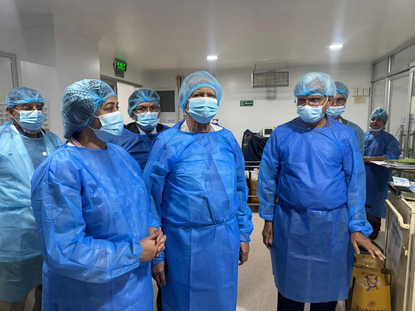হাসপাতালে পৌঁছালে বিএনপির মহাসচিব মির্জা ফখরুল ইসলাম আলমগীর, বেগম খালেদা জিয়ার ব্যক্তিগত চিকিৎসক অধ্যাপক ডা. এ. জে. এম. জাহিদ হোসেন, অধ্যাপক ডা. শাহাবুদ্দিন তালুকদার, খালেদা জিয়ার ছোট ছেলের স্ত্রী সৈয়দা শর্মিলা রহমান এবং ছোট ভাই শামীম এসকান্দার প্রধান উপদেষ্টাকে রিসিভ করেন।