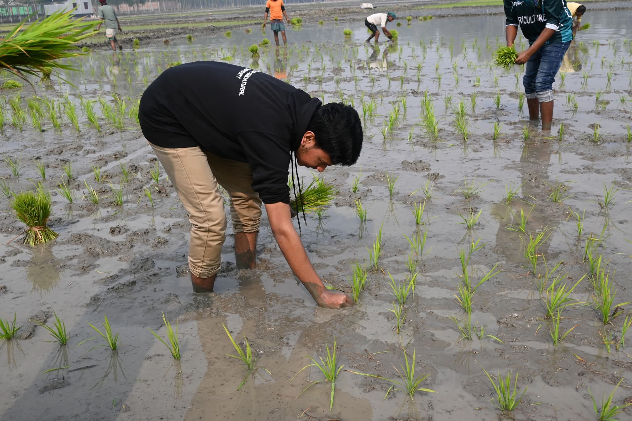 মাঠ পর্যায়ে ধান চাষের প্রশিক্ষণে কুড়িগ্রাম কৃষি বিশ্ববিদ্যালয়ের শিক্ষার্থীরা