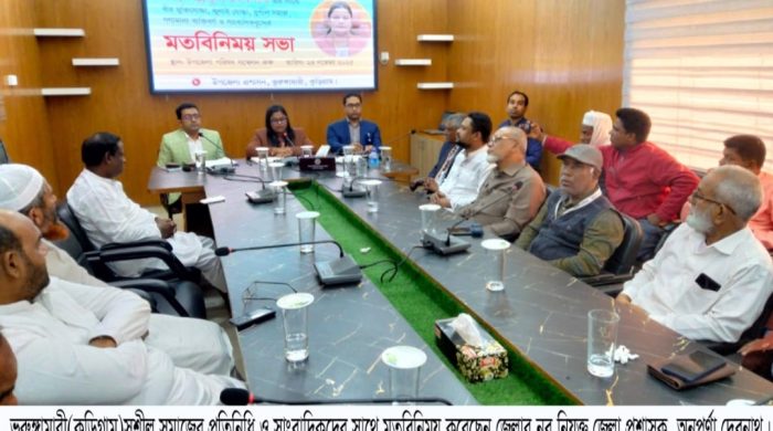 কুড়িগ্রামের ভূরুঙ্গামারীতে সুশীল সমাজের প্রতিনিধি ও সাংবাদিকদের সাথে মতবিনিময় করেছেন জেলার নব নিযুক্ত জেলা প্রশাসক (ডিসি) অন্নপূর্ণা দেবনাথ। সোমবার দুপুরে ভূরুঙ্গামারী উপজেলা পরিষদ সভা কক্ষে এ মতবিনিময় সভা অনুষ্ঠিত হয়।